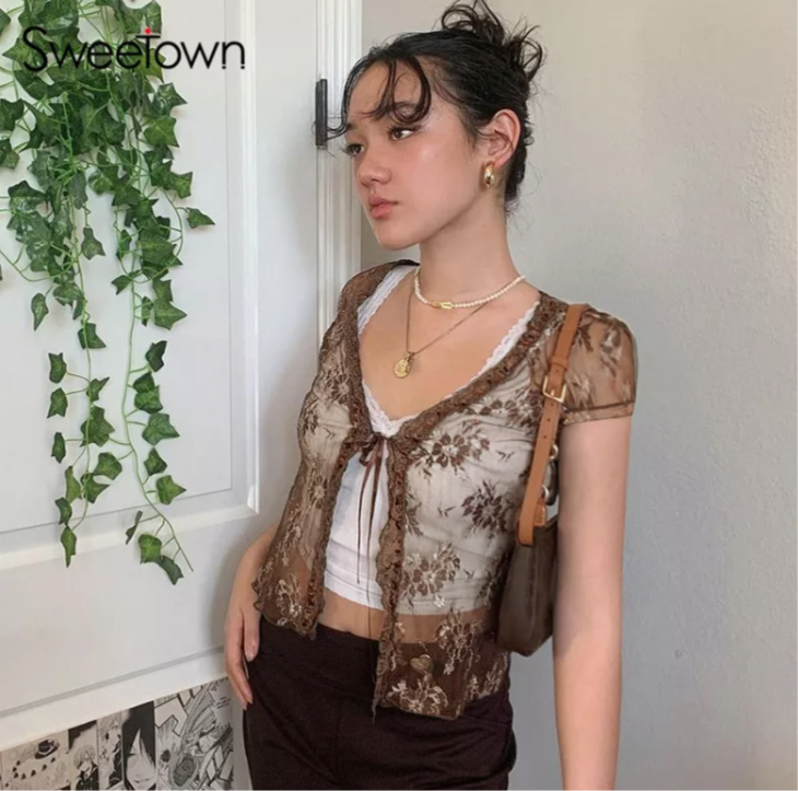 <transcy>خمر Y2K الدانتيل المحاصيل الأعلى قصيرة الأكمام</transcy>