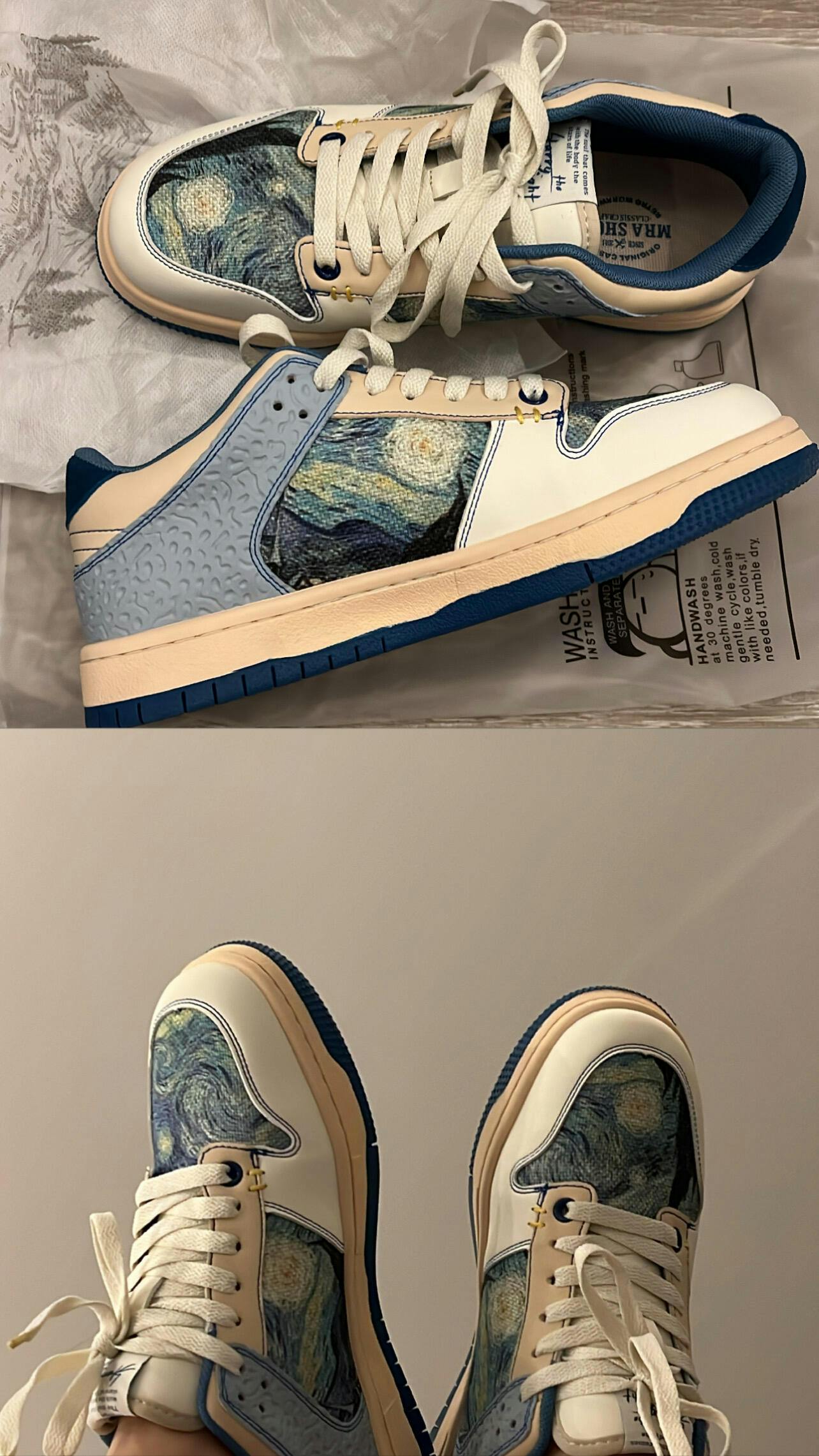 Inspired by Vincent van Gogh's famous painting "The Starry Night," these shoes feature a stunning rendition of the iconic artwork.